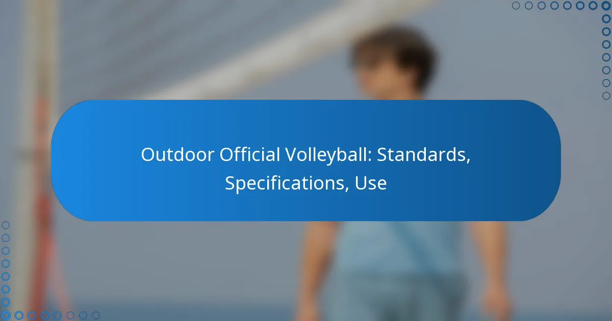 Outdoor volleyballs are designed to withstand various weather conditions while maintaining performance standards. Key specifications include materials, dimensions, weight, and pressure requirements that ensure optimal playability on outdoor surfaces.