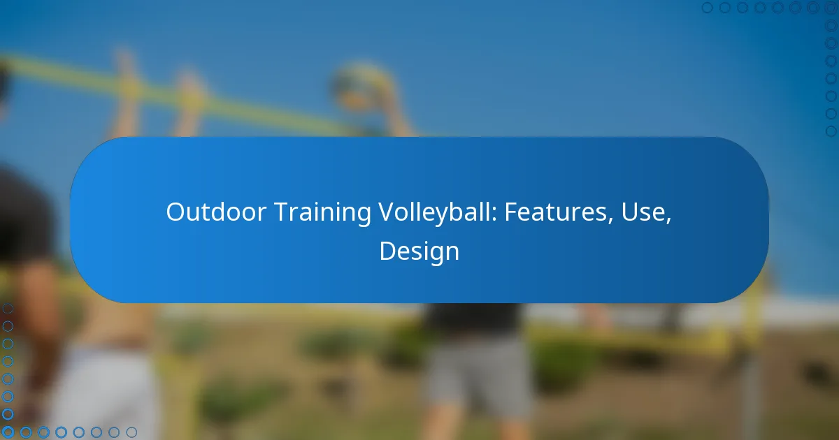 Outdoor training volleyballs are designed with specific features that enhance performance and durability in various weather conditions. Key aspects include material composition, size and weight specifications, grip characteristics, performance technologies, and weather resistance.